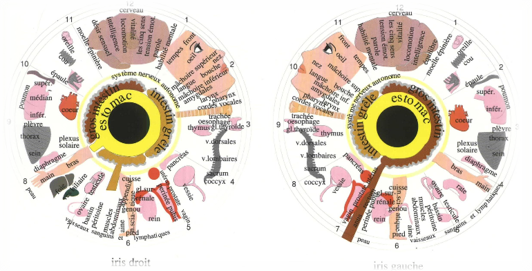 L’Iridologie est une des techniques de bilan basée sur l'observation des iris (c’est la partie colorée de l’œil), chaque iris est unique, et raconte une histoire différente, l’iris est le témoin de notre héritage (la constitution), le lien avec nos ancêtres, les différents stades embryologiques (stades du développement du bébé), notre histoire jusqu'à présent, et donc on parle de prédisposition (les prédispositions ne sont pas les maladies), et de tendances.