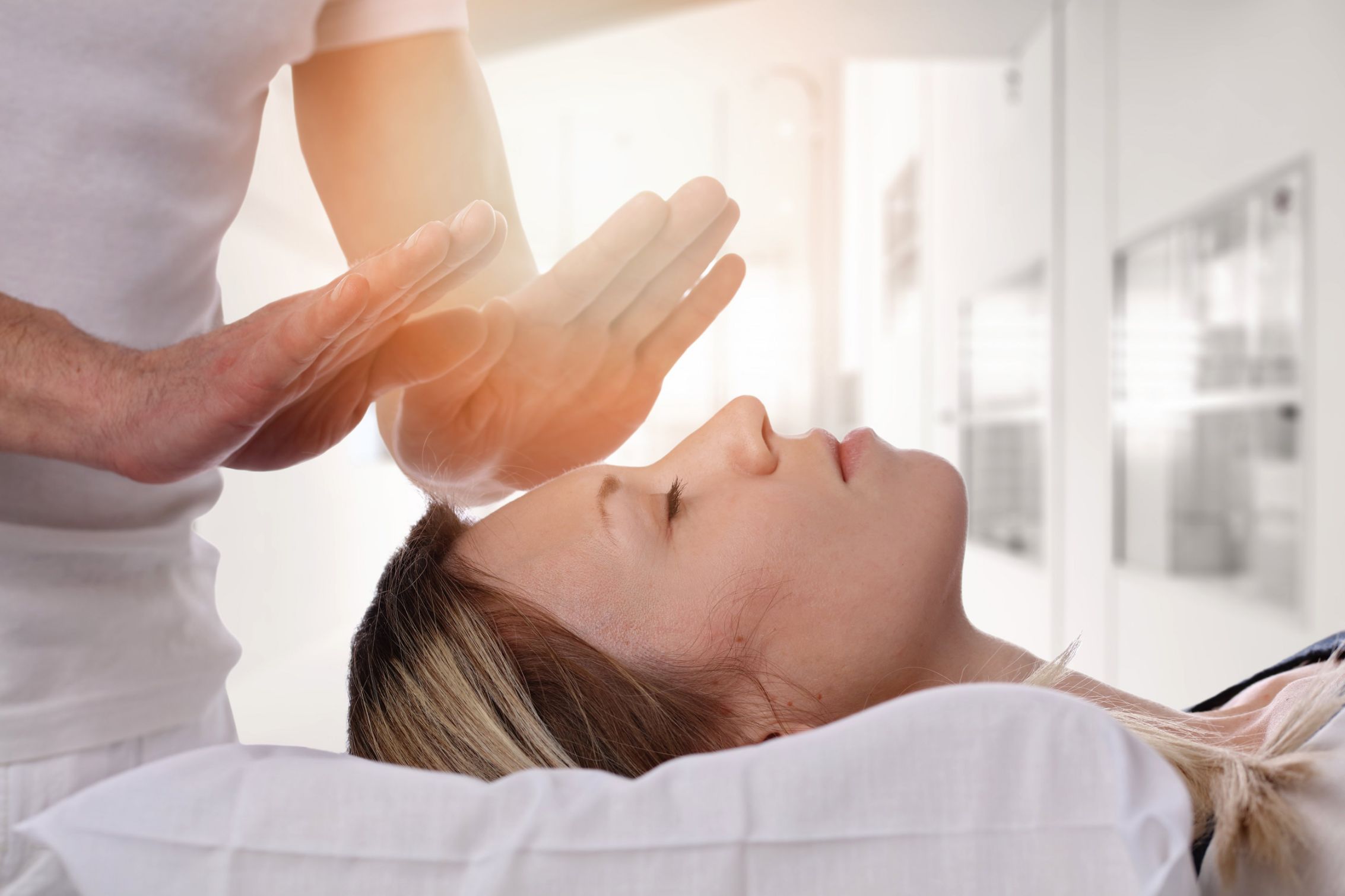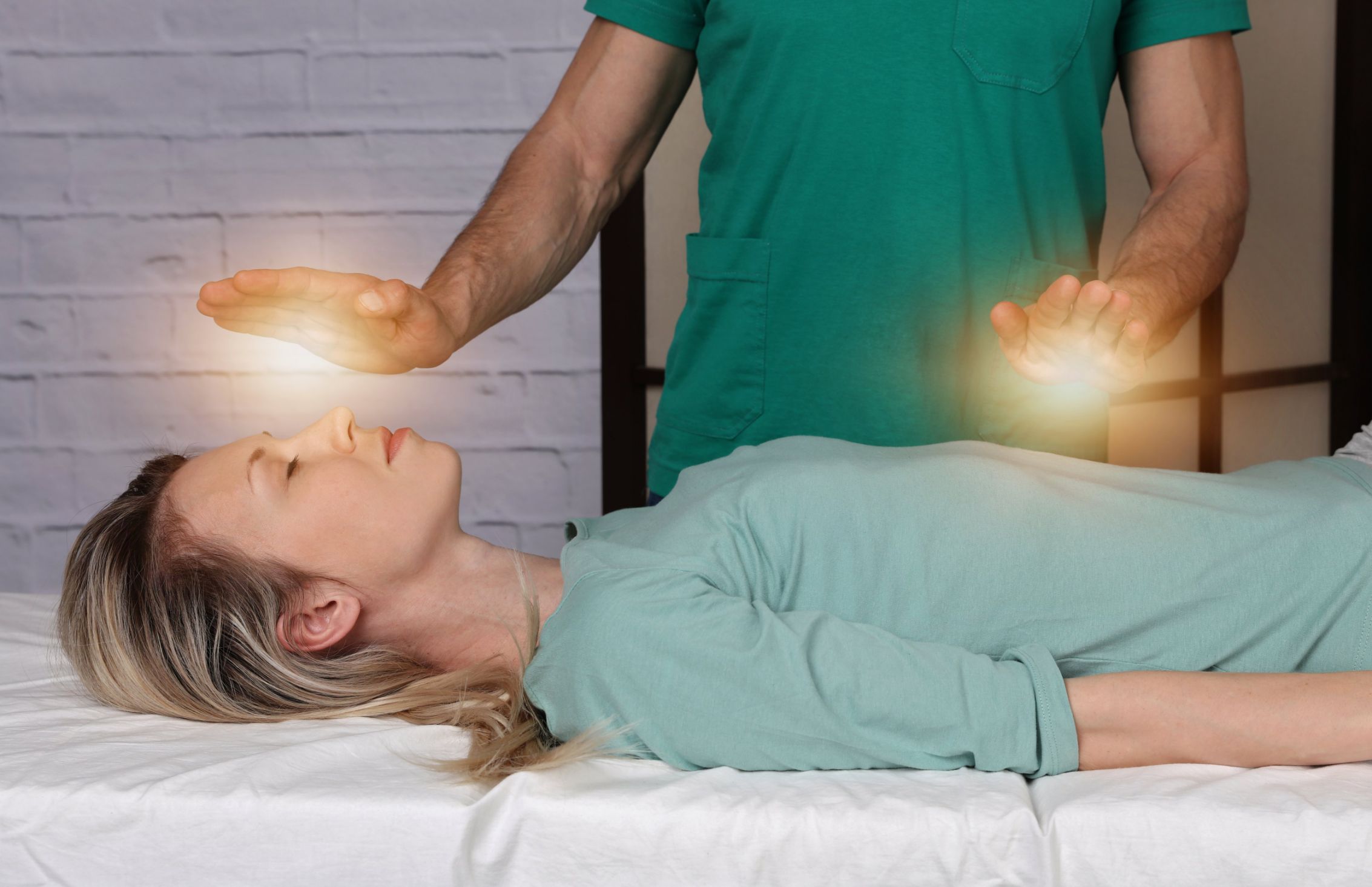 Je commence une séance de magnétisation par une prise de contact avec le patient (couché sur le ventre), les yeux fermés.